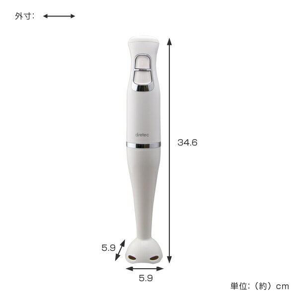 サイズ約 幅5.9×奥行5.9×高さ34.6(cm)重量:約607g内容量本体、専用カップ材質本体:ABS樹脂、ステンレス専用カップ:AS樹脂カラーアイボリー、レッド備考消費電力:150W定格時間:1分専用カップ容量:約700ml商品区分調理家電カテゴリから探す●簡単に「つぶす」「混ぜる」が出来るハンドブレンダーです。